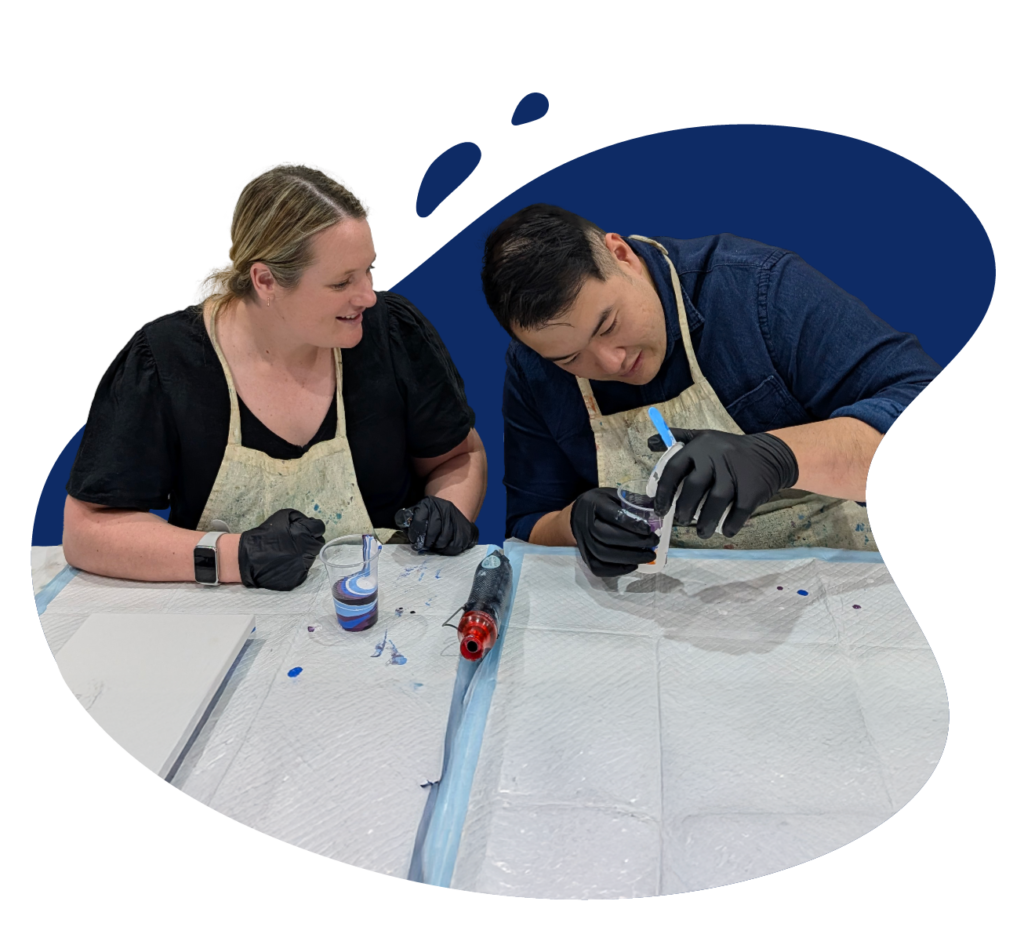 Every day at 6 pm you can join me in an intimate acrylic pouring workshop in the InnerWest, Sydney. These classes are perfect for couples, friends, or small groups looking for a fun, social, and relaxing experience.